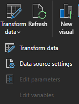Tip: if you click on the "Transform data" and then hover over the "Transform data" in the pull-down list you will see